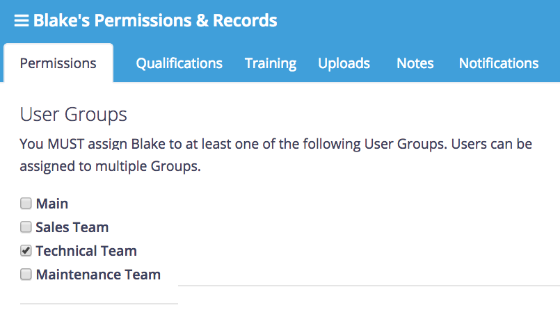 Qualifications and Training Records can be simply uploaded into the User File. In addition to storing the documents, if there are expiry dates on any of the training or qualifications, automated expiry notifications are included.