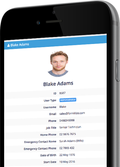 When setting up your users, the solution can be used to store all related contact and HR details such as Emergency Contacts, Start and End Dates and Personal Contact information.